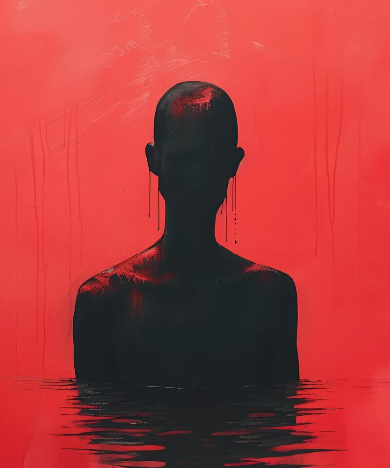 A shrouded man emerges from flames, his silhouette dancing with the embers. He walks between shadows, neither seen nor forgotten.