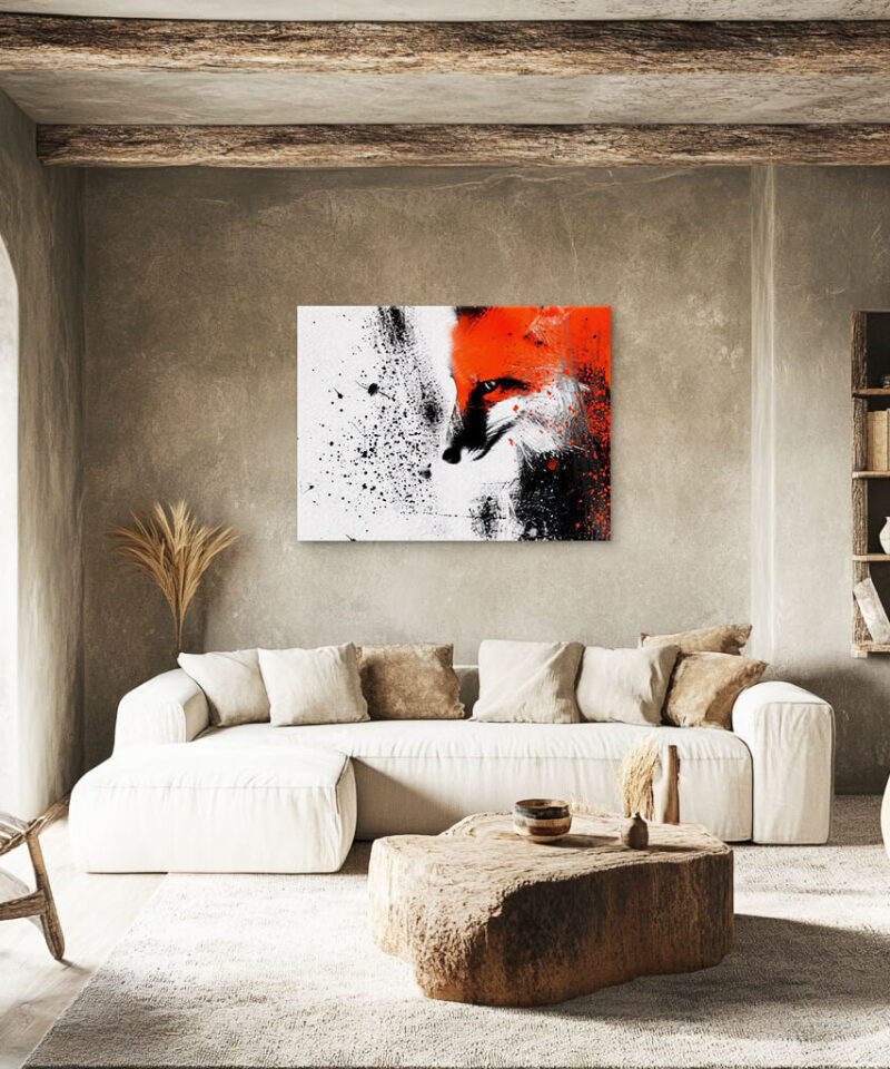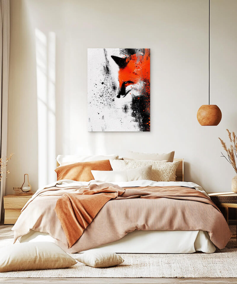 A fox’s form emerges from shadow and light, its gaze sharp with quiet cunning. It moves unseen, a whisper in the wilderness, leaving only footprints in the snow.