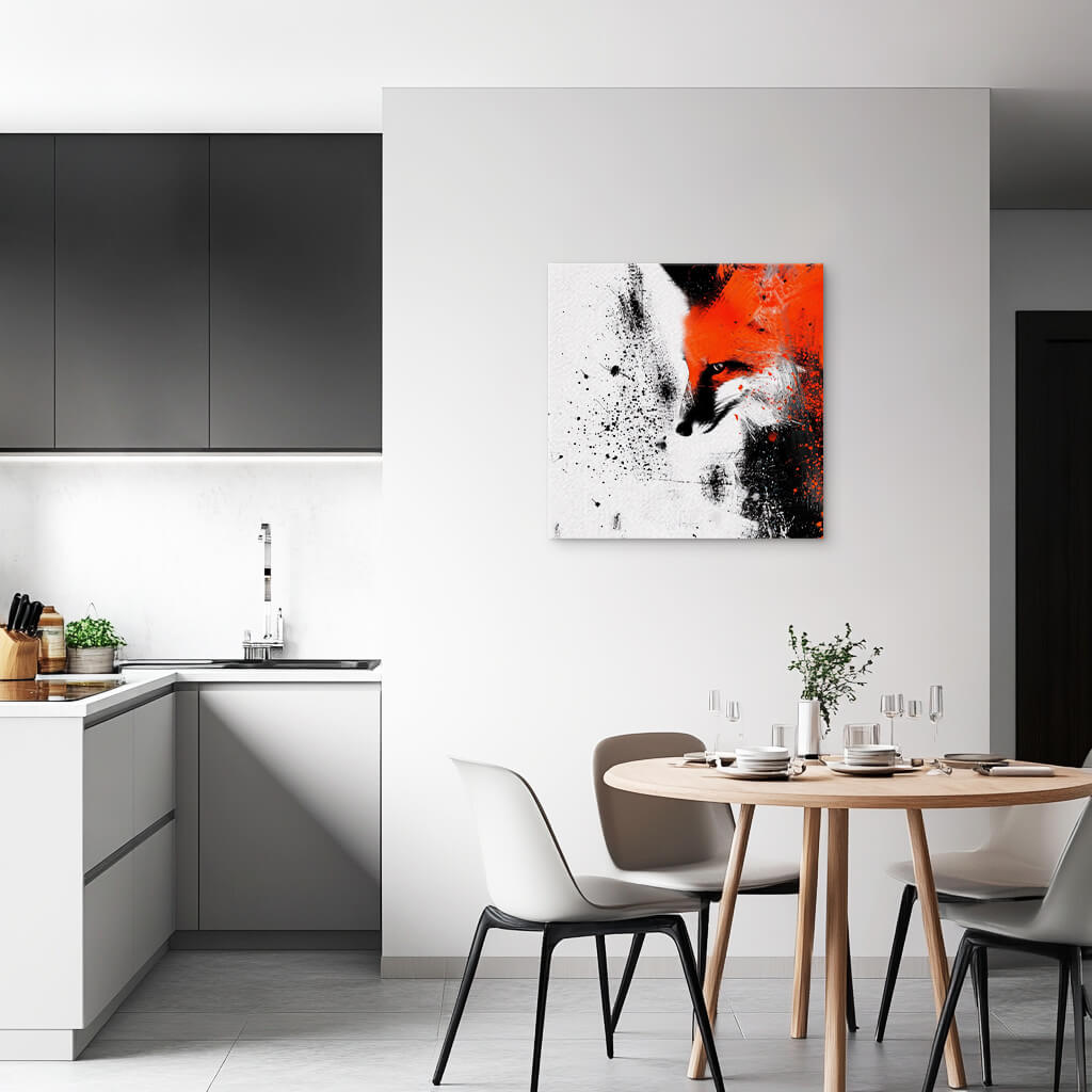 A fox’s form emerges from shadow and light, its gaze sharp with quiet cunning. It moves unseen, a whisper in the wilderness, leaving only footprints in the snow.
