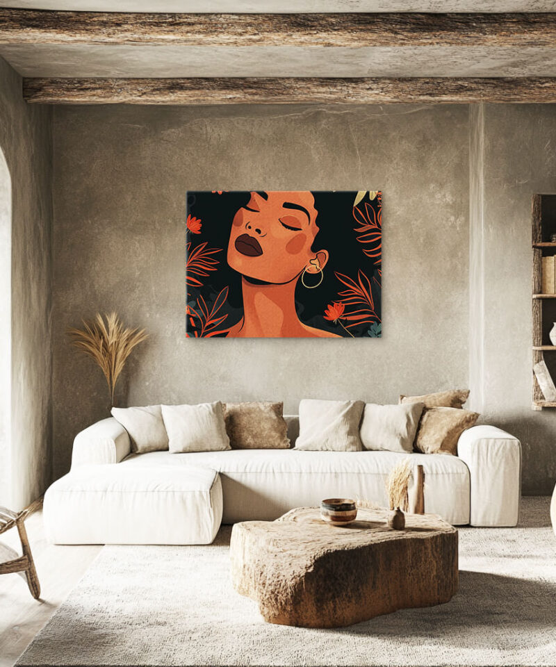 Draped in warm sunlight, a woman stands beneath swaying leaves, her silhouette blending with nature’s embrace. She is timeless, her presence rooted in earth and sky.