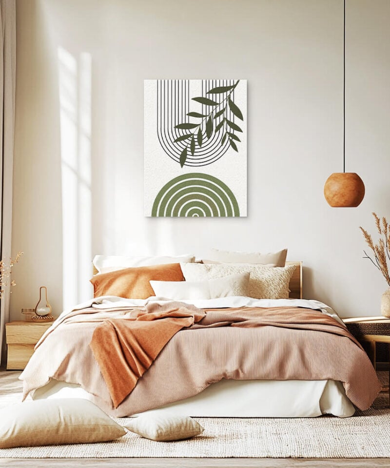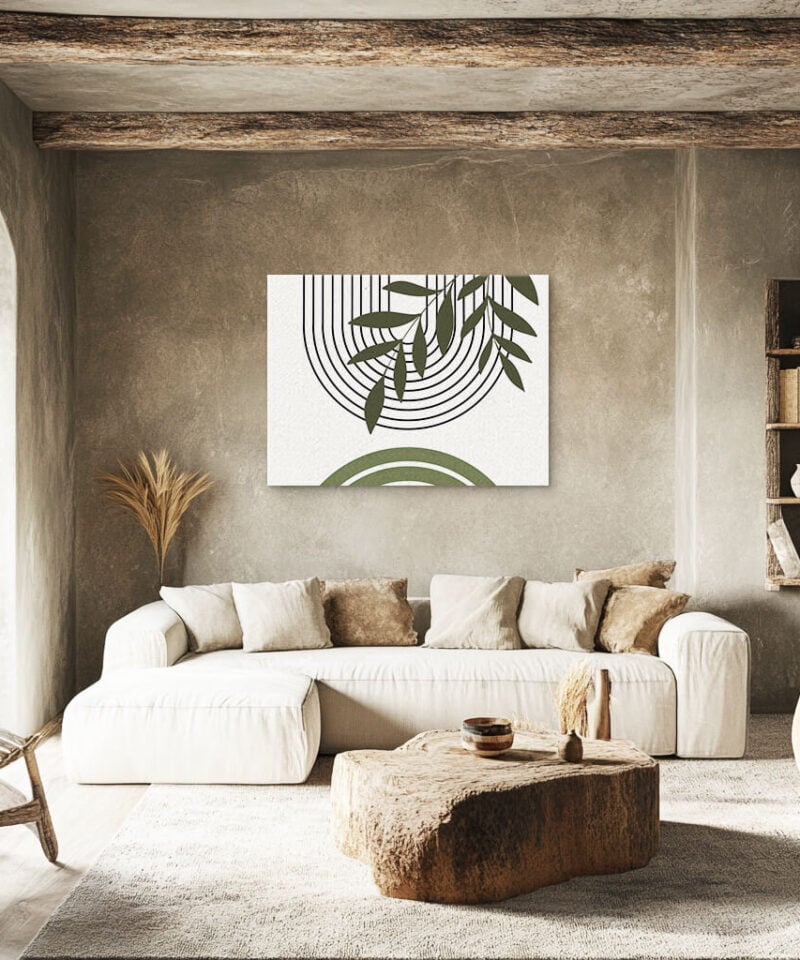 Greens fold into shapes inspired by leaves and structure. A nature-meets-minimalism piece that grows gently across the canvas.