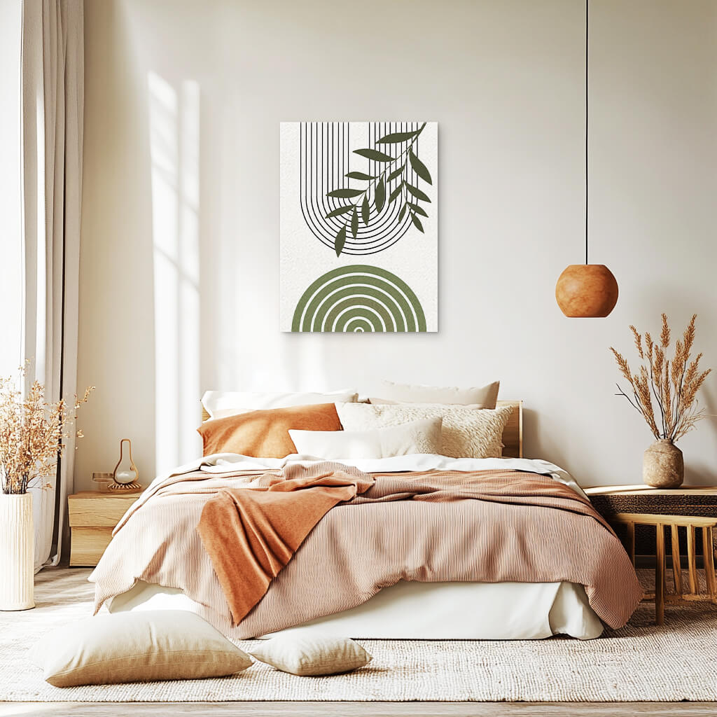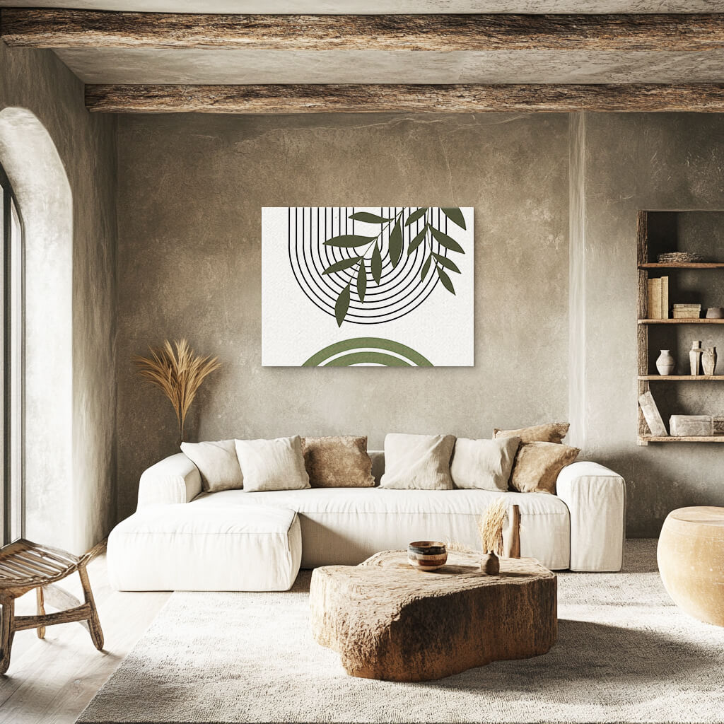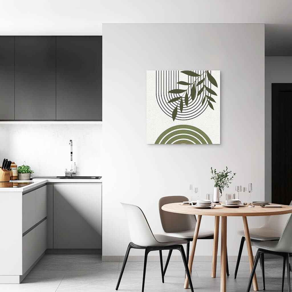 Greens fold into shapes inspired by leaves and structure. A nature-meets-minimalism piece that grows gently across the canvas.