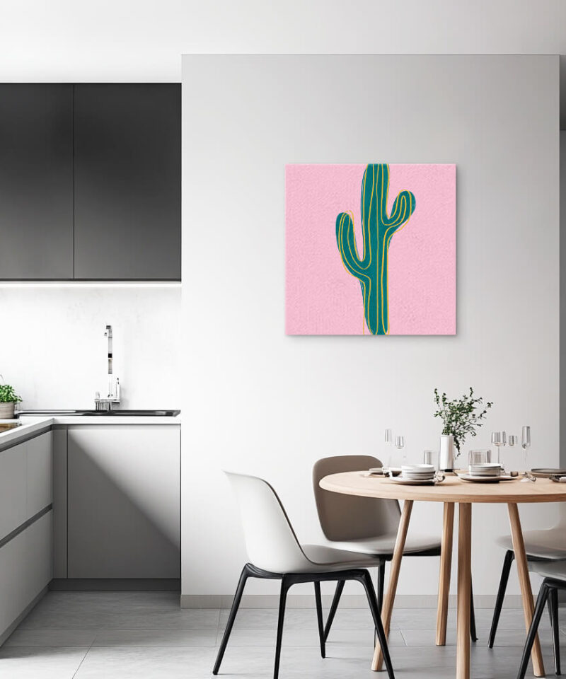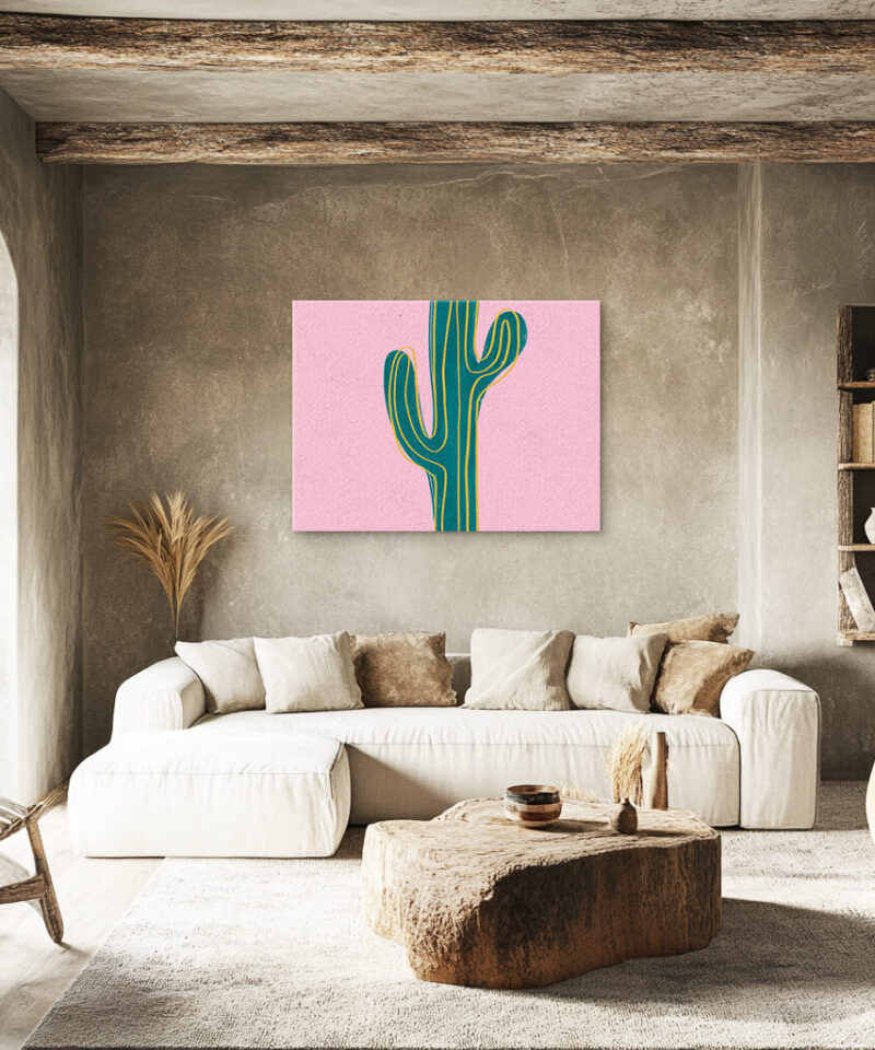 A bold red cactus rises alone. Spiky and elegant, it brings desert silence into design, expressing resilience through minimal abstraction.