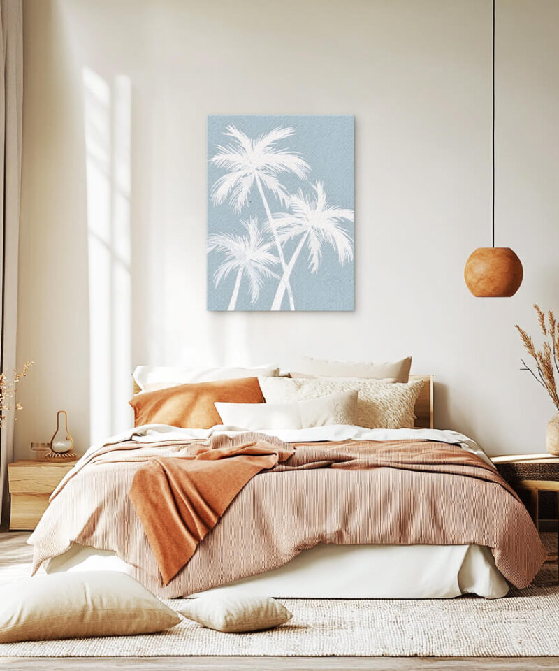 A gentle palm leans under ocean air. Its fronds move like whispers, shaping the shoreline with grace, balance, and natural rhythm.