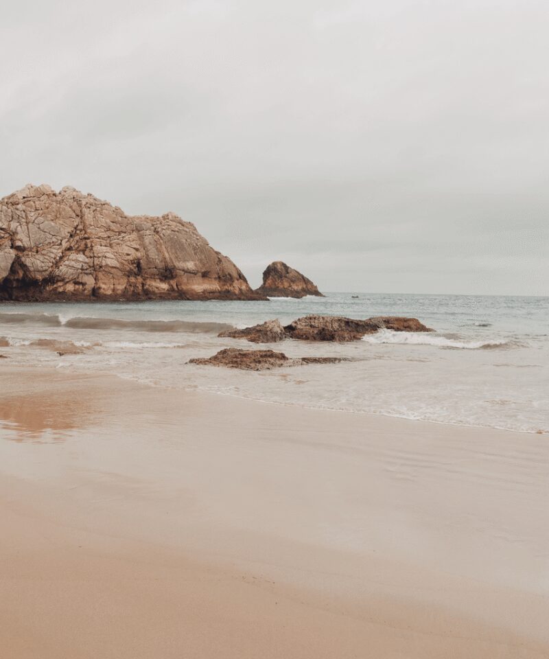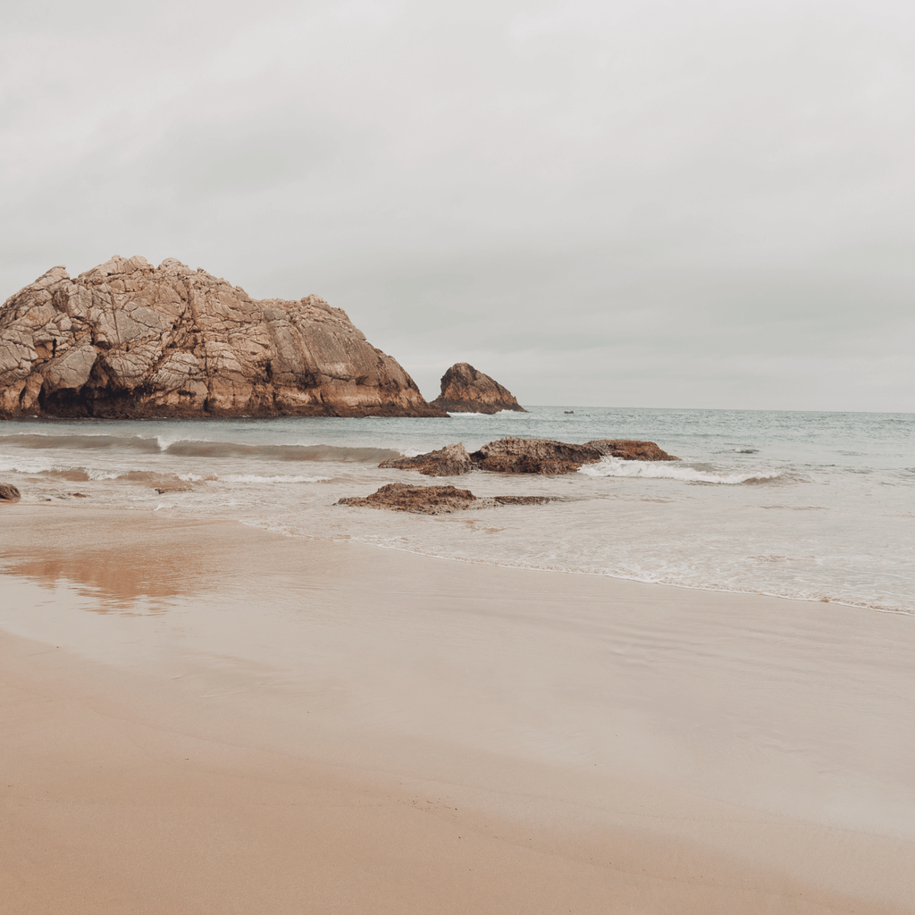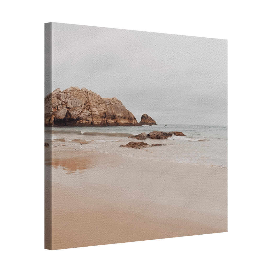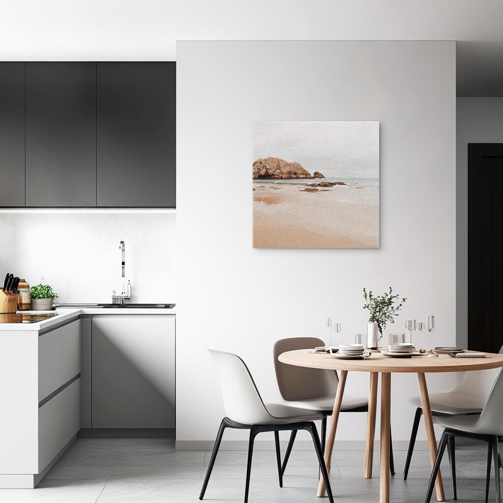 The shoreline glows with washed-out light. Each wave is a soft breath on sand, where stillness lives in the edges of quiet water.
